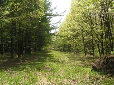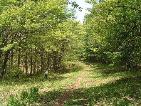 朝から気持ちのいい晴れ間が広がります。林の中の細い道を上へ20分ほどで棒道に。今が一番緑の奇麗な時!!緑のシャワーを浴びながらの心地よいウオーキングです。
