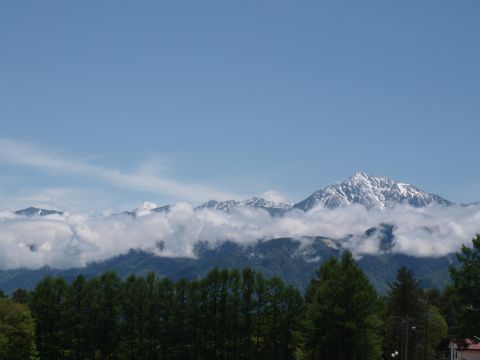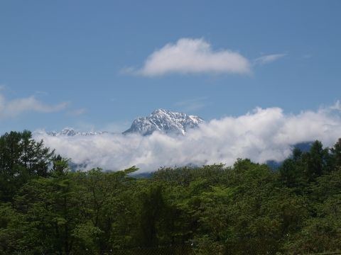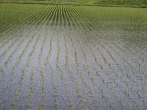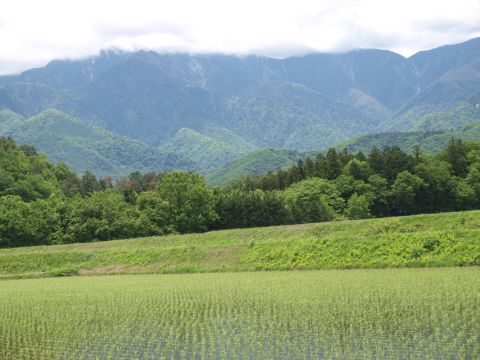 田植えが終わった田んぼと向こうに見える森と山々が何ともいえぬ美しさでなかなかその場を離れられません。