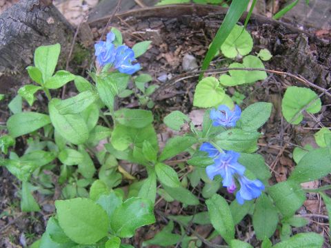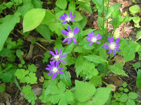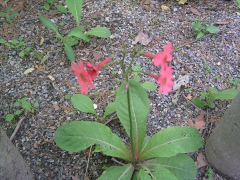 庭の通路の固い砂利道の真ん中に1本だけクリンソウが頑張って咲いています。周りには沢山の子供が出ていますが・・・。来年は???咲くかな???。ホタルカヅラもかなりあちこちに増えています。フタリシヅカはどんどん減ってきていていますが、なんとか咲いています。