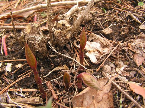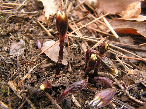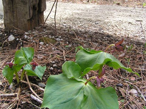 アカバナエンレイソウが咲き始めました。