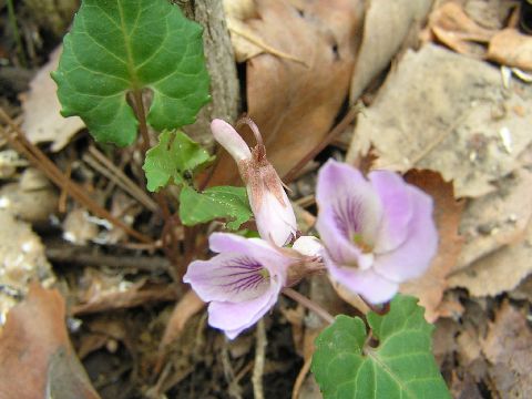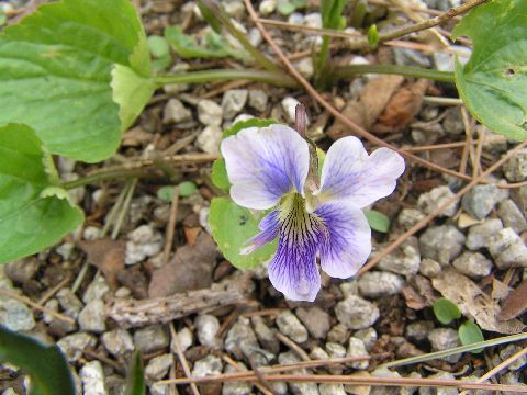 落ち葉の布団に埋まるようにスミレが咲いていました。