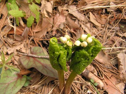 が、寒さにも負けずシロバナエンレイソウが咲き始めました。ビックリするほど増えています。エンレイソウ畑になりそうな勢い?です。