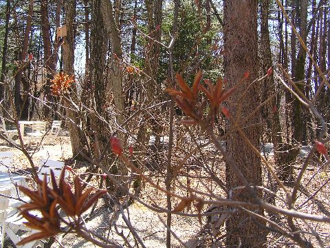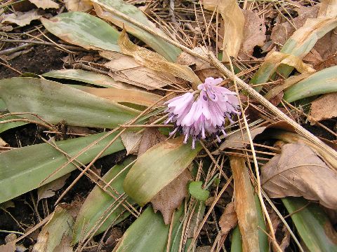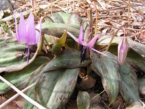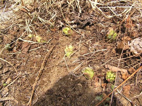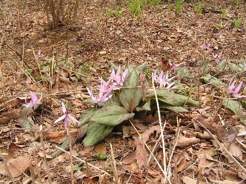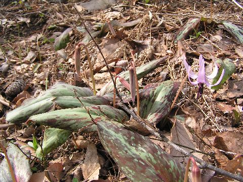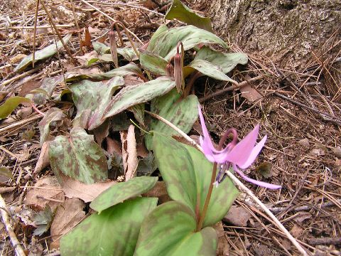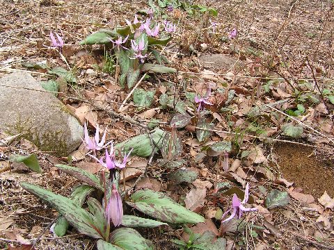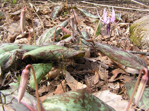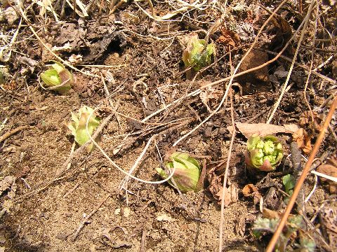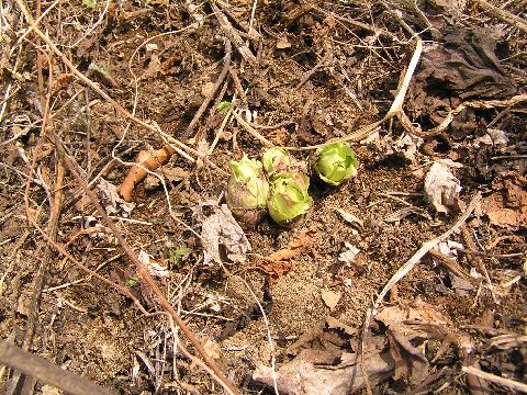 この布団のどけ時期もなかなか難しいのです。これからは春の光を浴びてたくましく育っていくでしょう。ひと足先に出ていたカタクリは大きな株になり周辺に増えて