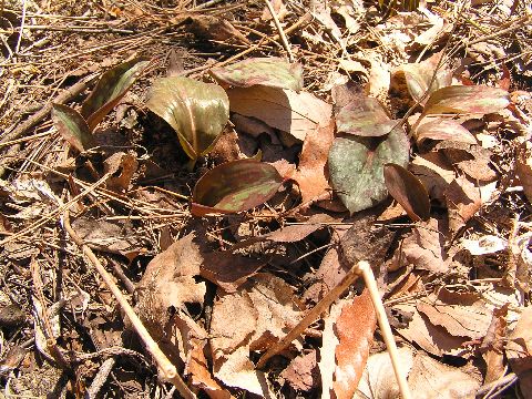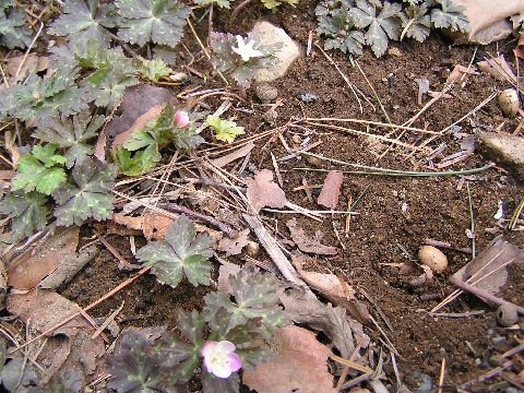 昨日は予報に反して朝から晴れ間も見えて小春日和の暖かな一日で、庭の落ち葉かきを始めました。寒い冬を暖かな落ち葉の布団に守られて春を待っていた山野草!!