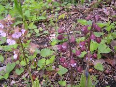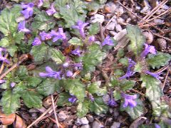 庭の道路近くに地面にべったりと張り付くように広がり紫色の小さな花を着けて彼方此方に咲いていて2日ほど前に見つけたのですが名前が解らずにいたのですが今日近所のかたに教えて頂きました。キランソウだそうで別名がジゴクノカマノフタというそうです。薬草だそうで医者殺しとも言うそうです。凄い名前で驚きました。(写真で見ると花も葉も立ち上がっているようですが、実物はプレスしたように地面に張り付いています)