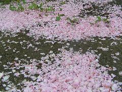 八重桜の花びらが風に舞ってあまり綺麗だったので買い物途中にパチリ!!風のいたずら・・にしては、見事な模様で暫く見ていましたがその間にも花びらは移動していきます。自然って素晴らしいですね。