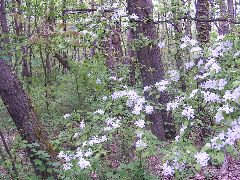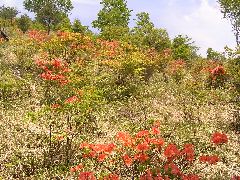 6月12日のウオークの下見に他のペンションの人達と行って来ました。朝から晴れて気持ちのいい一日になりそうな気配!!美しの森駐車場から10分ほど登った展望台から見える山々は墨絵の世界でした。羽衣池に向かう道の両側には白いズミと、オレンジ色のレンゲツツジ、赤い山ツツジが彼方此方に・・・・。アップダウンが少しありますが、緑の一番綺麗なこの季節のんびり、ユックリ、あるいてみませんか。そうそう途中にクリンソウも咲いていました。