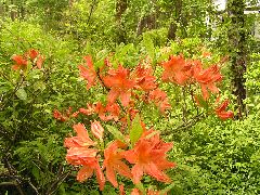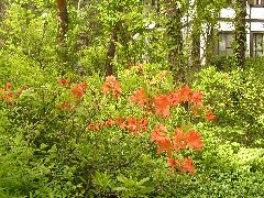 2日ほど留守にして、帰ってみると、またまた緑がおおきく広がり、蕾だったレンゲツツジも咲き始めていました。鮮やかなオレンジ色が緑の葉に映えて見事なコントラストです。朝晩の涼しさが花の持ちをよくしているようで、先に咲いた花々もまだまだ綺麗にさいています。そろそろ恐怖の草も出始めましたが・・・・。
