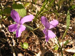 わらびを採りに林に入ったら、なんとなんと、あのスミレを見つけてしまった!!。其れはこの間「花おりおり」にのっていた「さくらすみれ」では????よ〜くみてみる。花の大きさ花びらの形。確かに間違いなさそう!!。興奮しながらシャッターを切る。帰って落ち着いて見てみると、陽の当たるところのはちゃんとピンク色に写っていましたが、木陰で咲いているものはブルーに撮れていましたがその花の特徴の花びらのくぼみもしっかり撮れていました。興奮していた割には綺麗に撮れた???と自画自賛・・・。