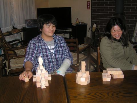 夜は音楽一家のコンサート?で盛り上がりました。お父さんが娘さんやお孫さんのピアノで美声を披露されたり、歌いながら弾かれたり、他のご家族のお子さんもピアノの発表会がちかいと言う事で弾いてくださったり,建築家志望のお孫さんは積み木でビルが!!並び楽しい一夜を過ごさせていただきました。
