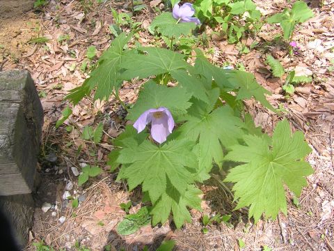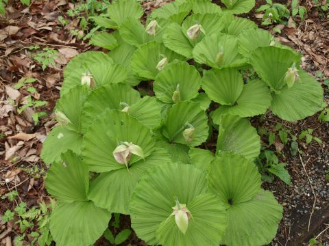 ハシリドコロが咲き始めました。海老茶色の花ですが毒を持っているそうです。華奢な花で大好きなアマナがいつの間にか密やかに咲いていました。サンカヨウも先日より伸びて花も沢山ついています。