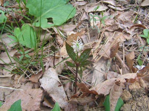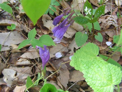 シラネアオイがもっともっと増えると思ったのに、逆に減った感じでがっかりです。ヒトリシズカもほんとに静かに1本だけ咲いていました。ピンクのラショウモンカズラも矢張り1本だけさいています。