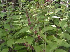 レンゲショウマも次々と色づいてきてボツボツ咲き始めました。うつむき加減で咲くところが又カワイイですね
