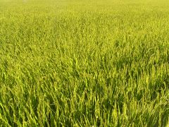 黄金色に輝く稲穂!! 風に吹かれてさざ波のようにうねる。息をのむような美しさです。