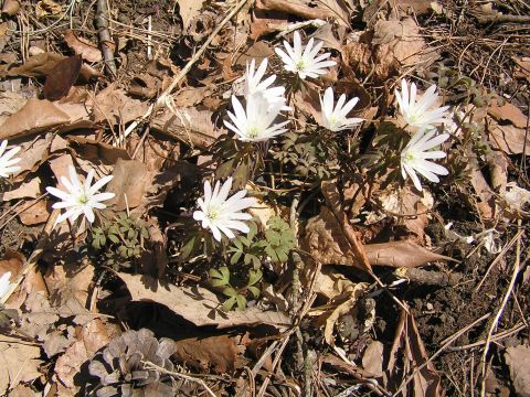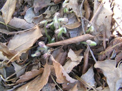 このところの暖かさでユキワリソウが咲き始めましたが3色植えて2色だけ咲きましたが後1種はまだ蕾です。春をいち早く感じ咲く花だそうです。夜は寒いかなと落ち葉の布団を厚くかけています・・・・・・。