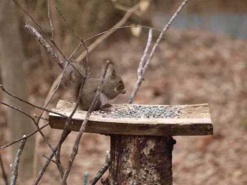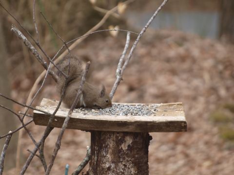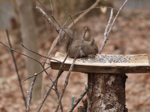 暖かな春の日差しに誘われてひさ〜〜〜しぶりに、リスがお出ましです。大きな太い木を切られてから来なくなり1年ぶりでしょうか??