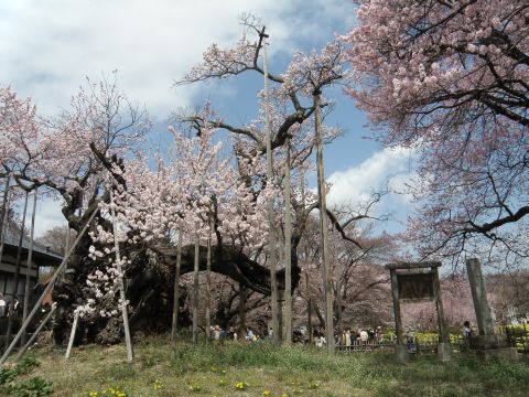 お客様をご案内して実相寺のサクラとわに塚のサクラを見に、暖かさに誘われて大勢の花見客で賑わっていました。ちょうど9分咲き位で見ごろ。2500年とも言われる実相寺のサクラも手当ての甲斐もあり、見事に花をつけていました。わに塚のサクラも9分咲きくらいでした。快晴であれば八ヶ岳も見えたのにと少し残念でしたが・・・。地震以来気持ちが沈んでいましたがサクラの花に少し元気をもらえたかな。