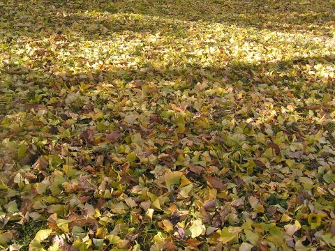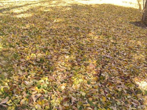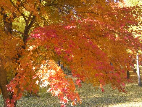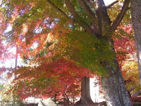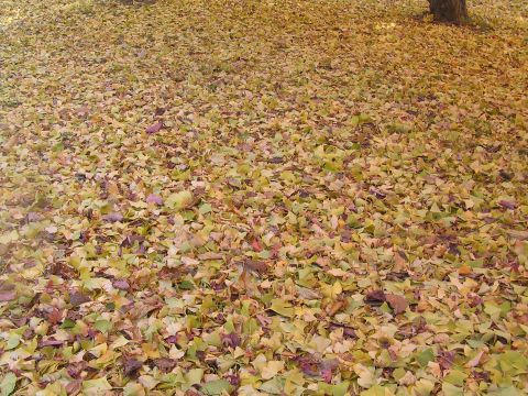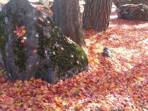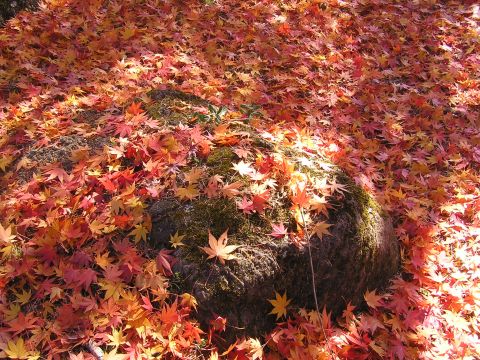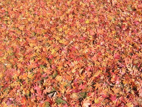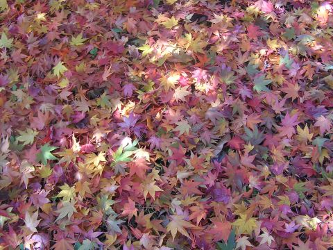 散り落ちたもみじが何とも奇麗でした。少しはなれたところには7色の葉をつけた大木も見事でした。