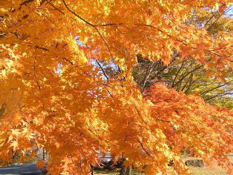 通り」すがりの紅葉があまりにも奇麗でくるまをとめて・・・。日差しを浴びた葉は、言葉では表せないほど奇麗でした。