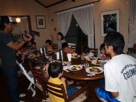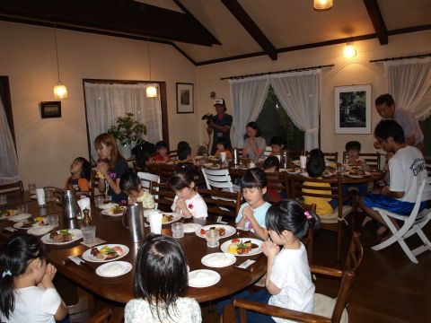 今日は1年に1度の可愛いお客様のお泊りです。心配した雨も落ちずほっとしました。4時ごろ、予定より早く可愛い声が・・・・。こんにちわ〜〜〜〜お世話になりま〜〜〜〜すと玄関に響きます。家を離れて遠く離れたところでのお泊り。み〜〜んな興奮気味です。夕食前にお風呂に入れて先生はもう大変。お祈りをして夕食が始まります。カメラマンの方も大変!!食後の花火、子供たちの寝顔を撮るまでがお仕事です。先生方も夜中に起きる子も居て朝まで眠れない様子。ご苦労様です。でも子供たちにはいい思い出が出来た事でしょう。