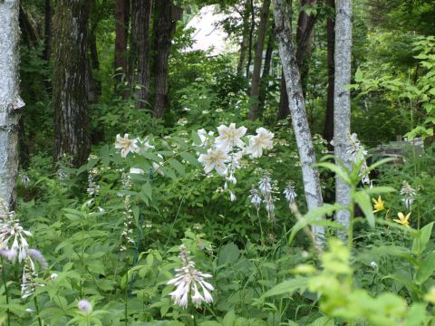 強い香りを漂わせながら庭のヤマユリが咲き始めました。今は10本ほどに増えて庭を華やかにしてくれています。
