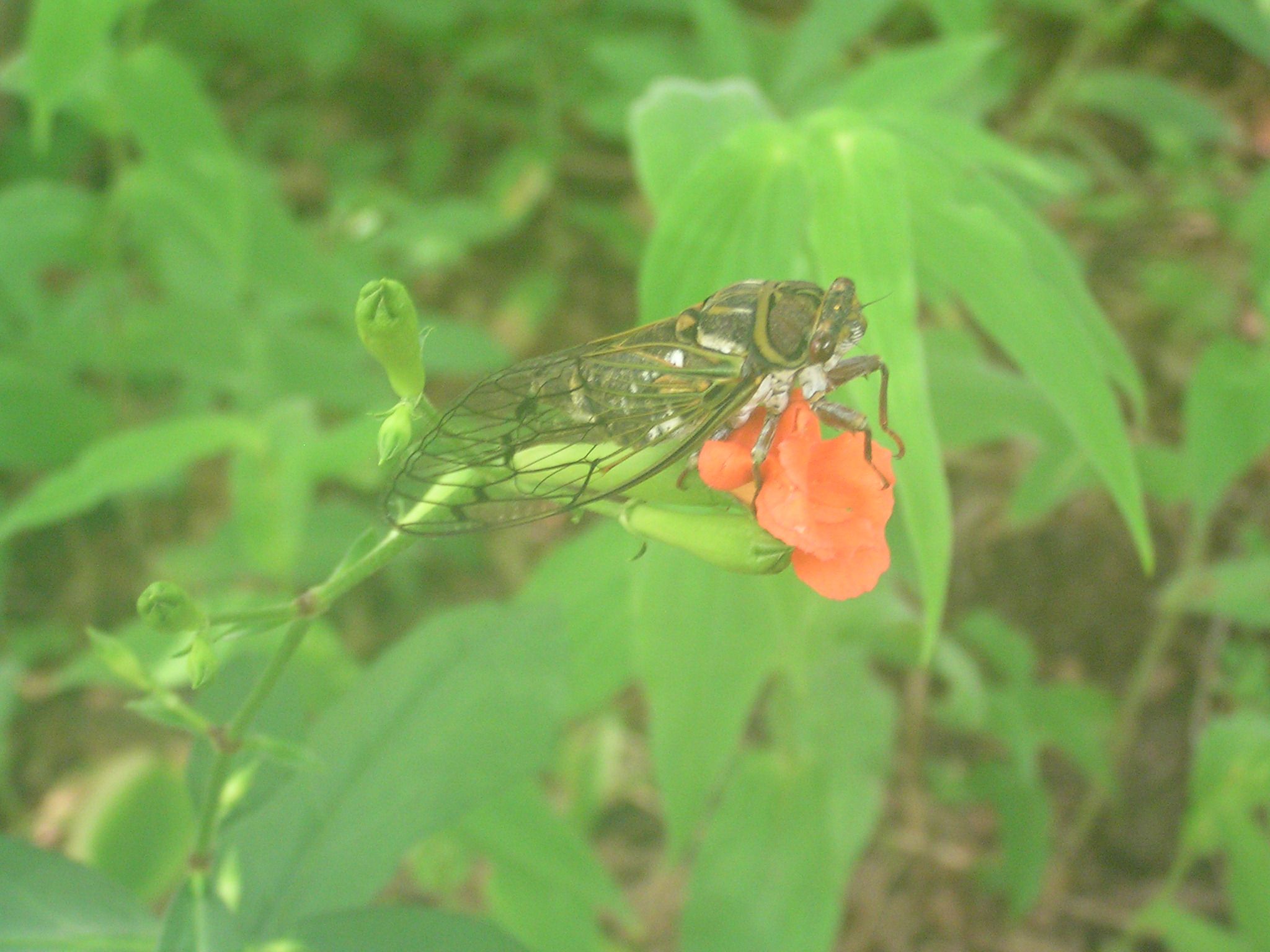 鮮やかなオレンジ色のフシグロセンノウがまだ2輪だけですが咲きました。その一輪にセミが止まっていて面白い写真が撮れました。今日は八ヶ岳ホースショウが小淵沢であり午後2時から始まり8時45分まで賑わいます。私たちは、まだ1度も見にいけませんが・・・・・。