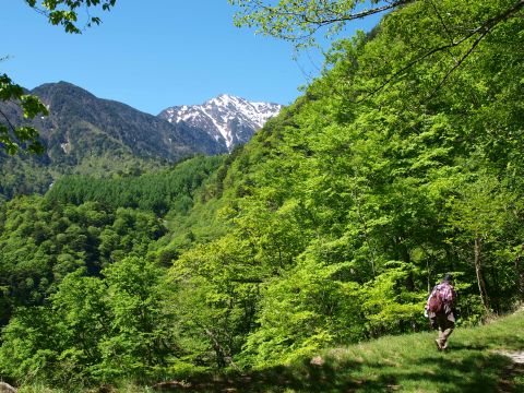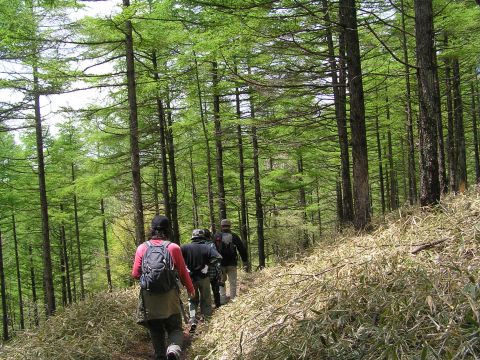 駐車場に車を置いて歩く事1時間。その道中の目に染みるような緑に感動したり、富士山や八ヶ岳が雪を抱いてくっきりと青い空に浮かんでいて、わあ〜〜!!綺麗・きれい・時間と共に気温も上がり風も心地よい爽やかな風に・・・・。体中の血液が浄化されていくような一時間のウオーキングでした。