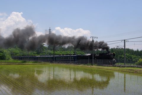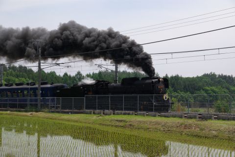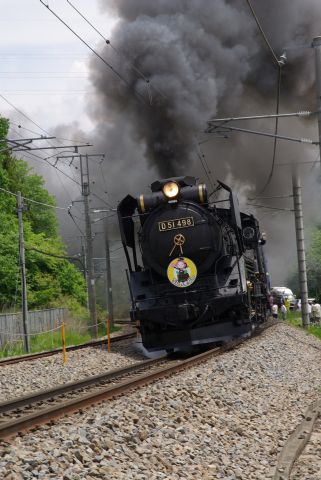 偶然昨日来合わせた友人と見に行きましたが待つ事30分汽笛を鳴らし黒煙をはきながら懐かしい姿を現しました。青空に真っ黒の煙がたなびきます。当時は、トンネルに入ると慌てて窓を閉めたものです・・・・。窓を閉めるのが遅れるとすすが車中にはいり、顔が黒く汚れたのも、今は懐かしい思い出です。