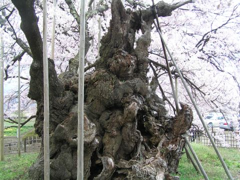 朝の散歩に行かれ今日は暖かいですねと帰ってこられ朝食後皆でサクラ見に出かけましたが冬のような冷たい北風と降ったりやんだりの雨で実相寺についた頃は寒さで皆んな花見気分もうせて車で一回りして其の儘岐路につかれました。私達は戻って写真だけ撮りましたが・・・・。このサクラの幹の大きさは日本一だそうです。