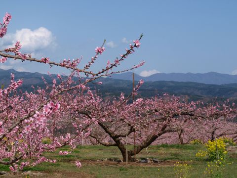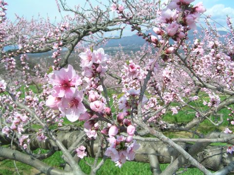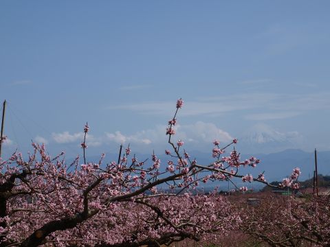ポレポレウオークは都合で参加できず残念でしたが、午後から車で行ってみました。7~8分咲きでしょうかピンク色が広がってうっすらと富士山も・・・・。青い空も見え天気予報は外れてラッキイー!!昨夜のお客様もサクラも、桃も堪能された事でしょう。