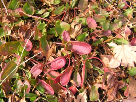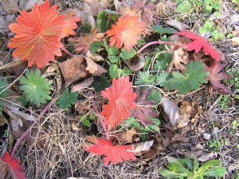 公園のツツジなど低木の下で赤く紅葉している葉っぱを見つけました。もうこんなに綺麗な紅葉がみられるとは思ってもいなかったので嬉しい出会いでした。それと陽だまりではタンポポも元気に咲いていました。今年は寒暖の差が激しく植物たちも驚いている事でしょう。