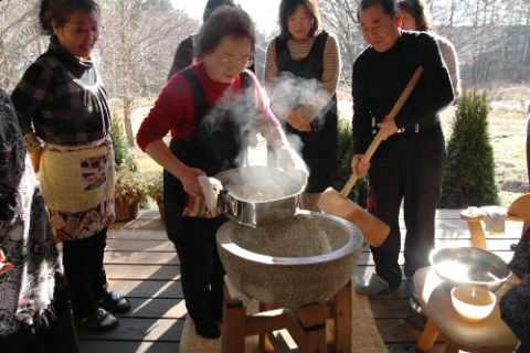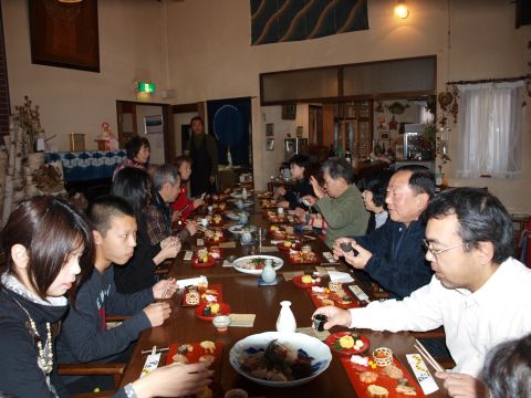 今年最後の正食です。お正月料理という事もあり大勢の人でした。玄米餅のお雑煮やゆずかぶら、茶巾寿司、花びら餅など、食事の後には、臼と杵での餅つきまであり、つきたての玄米餅をきな粉とあんこと、大根おろしでいただき一足早いお正月気分・・・・・でした。