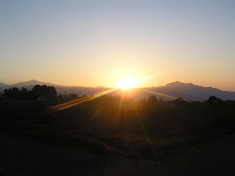 珍しく早起きで5時半に富士見駅まで。帰りは丁度日の出がみられるかとカメラも持参。山の後ろから顔を覗かせたと思うまもなくするりと・・・あたりはオレンジ色に染まり富士山もほんのうっすらと見えて八ヶ岳が驚くほど綺麗に・・・。早起きは何とやら。今日は一日いいことがありそうな・・・・。