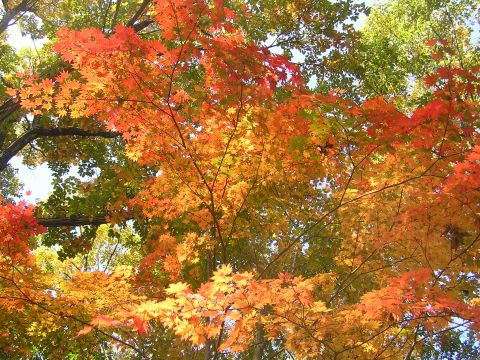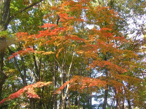 この暖かなお天気も今日一日だそうでゴルフのお客様もいそいそと7時にはお出かけ。庭のもみじで1本だけ紅葉の綺麗な木が1本だけあります。日当たり具合で葉の色合いが微妙に違って思わず眺めてしまいます。