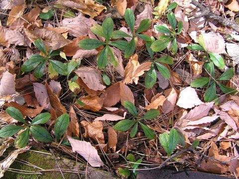 このところの暖かさに春と間違えた??のでしょうか?花が終わり茎が枯れている根元から新しい茎が出てなんと花が咲いていました。シヨウジョウバカマも青い葉が生き生きと出ていますしホタルカズラの葉も青々とした葉が地面をはっています。あまりの暖かさに春だと勘違いしたのでしょうね。