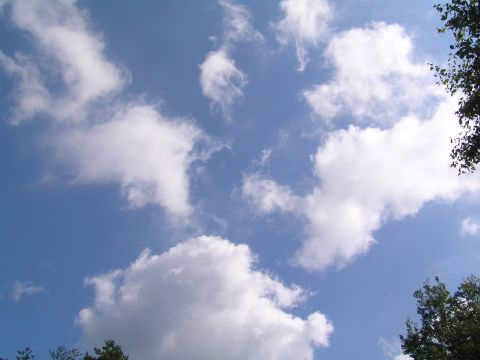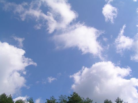 今日も昨日に続いて朝から爽やかな青い空。お客様をお見送りしてふと見上げるとふわふわとした白い雲。あまりにも綺麗なので・・・。少し風があるためか以外に雲の流れが速く驚きました。