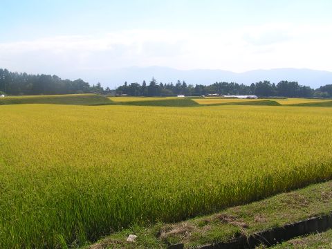 お客様の戻られる前にと、急に思い立ち、弟夫婦とドライブに。昨日の方が青空だったねといいながらの出発でしたが、走るほどに晴れ間が広がり、心も弾みます。何枚もの田に黄金色の稲穂が広がっている所に差し掛かりました。えっつ!!電駐がない??こんなところがあるなんて!!と車を降りて撮影。暫し散策。素晴らしい田園風景との出会いでした。