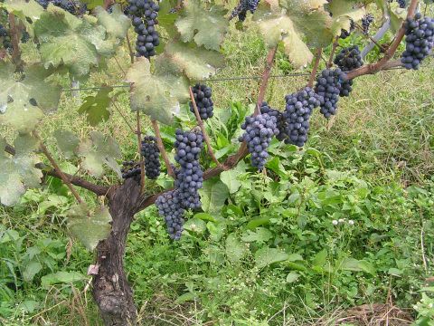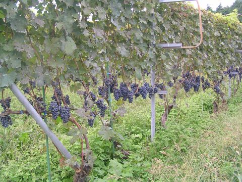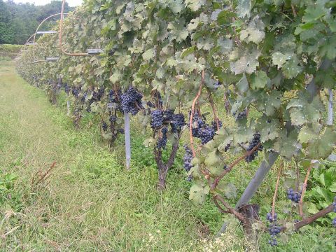ワイン工場の横を通りかかったら、隣接地の畑にブドウが下がっていました。ワイン用のブドウなのでしょう。