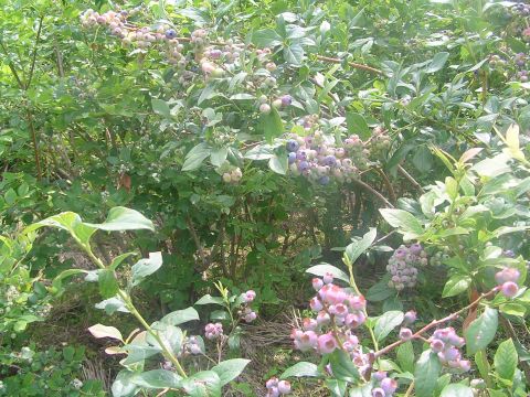 今日はブルーベリー摘みに。朝から曇りで風も爽やかでラッキーです。9時30分くらいから2時間30分くらい摘みましたが、先月に降ったひょうの被害を受けて実がつぶれたものもありました。一キロ1000円で、畑のどの木で摘んでもよく実も大きいのも小さいのもあります。自分で摘み取るのもなかなか楽しいもので、8月の半ばまで摘み取れるそうです。