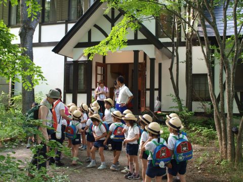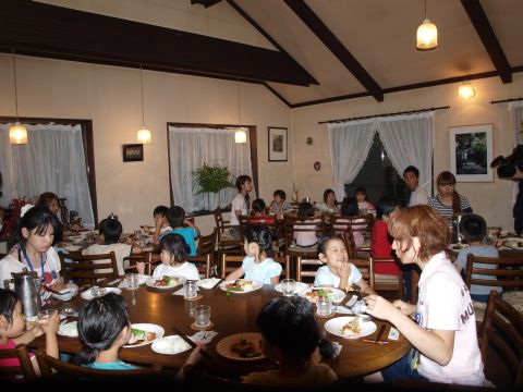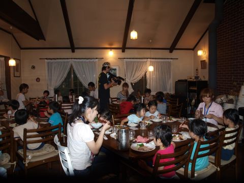 お天気に恵まれて可愛いお客様の到着です。清里の牧場で3時間ほど遊んで小淵沢へ。元気いっぱいの声が庭から聞こえてきます。こんにちわ〜〜と口々にご挨拶!!。お散歩・お風呂・夕食は6時から・花火をして、8時に就寝。どんな夢を見ているのでしょう??