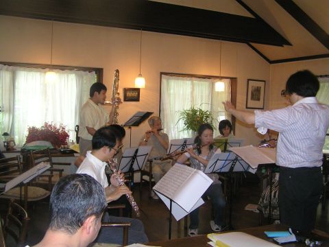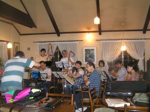 毎年この時期に来てくださるメンバーです。1時過ぎから練習が始まります。夕食後も練習、懇親会とつづきます。翌日も一日中、昨年よりハードですねとお尋ねしましたら、9月にコンサートがあるとのこと、でした。お帰りになる日もお昼までと、驚くほどハードな練習風景でした。