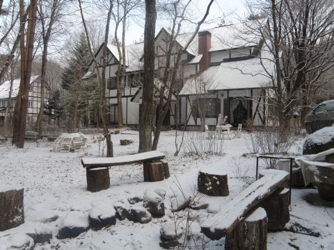 カーテンを開けると外は真っ白でした。久し振りに綺麗な雪景色でしたが風が冷たく寒い朝でしたが、大阪からのお客様は雪景色が綺麗だとトテモ喜んでくださいました。
