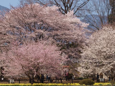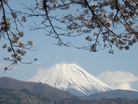 身延山からの帰りに大坊師公園に寄りました。ここは桜の名所100選に選ばれている公園で、全山2000本の桜が咲きピンク色に染まるそうです。明日から桜祭りだそうで今日は駐車場も無料とのこと。これまた混雑もなくラッキーでした。桜も6,7分咲で雪の富士山も桜越しにばっちり見えて、とても喜んで頂き私達もほっとしました。小淵沢に帰ると、さむ〜〜くまたふゆにまいもどった感じでした。今日は、冬〜春〜冬と行きつ戻りつした感じでした。