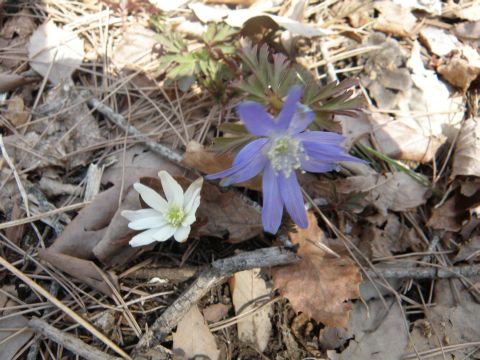 朝から晴天でしたが少し冷たい風が・・・・庭のショウジョウバカマが咲いているのを見つけました。もう一つ昨年は1本も咲かなかったイチゲの花が咲いているのを友人が見つけてくれて見に行くと、白が2本と薄いブルーが1本咲いていて嬉しくなりました。夕方ふと鳥の餌台に目をやると、アカゲラのオスが一生懸命ひまわりの種を食べていてその前にはシジュウカラが食べていて、初めて見るツーショットでした。