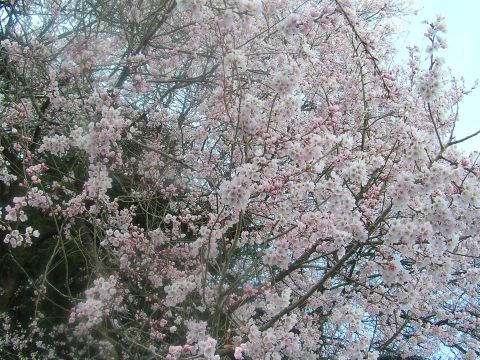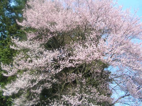 白州の道の駅に買い物に行ったら近くの神社の境内にある桜が丁度見ごろで、よく見ると二股に分かれた太い幹が道路にせり出すようにして咲いています。木陰の枝はまだまだ蕾も多く暫く楽しめそうです。この時期は桜の大木に、あちこちで出会えるのが楽しみです。