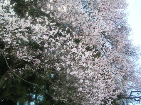 お客様と身延山に桜を見に。途中雪がチラチラ舞い始めましたが、車を進めるうちに周囲に緑が見え始め土手には桜もチラホラ咲き冬の国からだんだん春の国に入り込んでいくようで身延山に着くと枝垂桜はもう8,9分咲で見事に咲いていました。金曜日ですが、撮影隊や花見客で賑わっていました。お客様をご案内したおかげで、丁度見ごろのときにこられてラッキイでした。