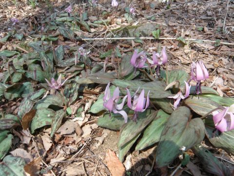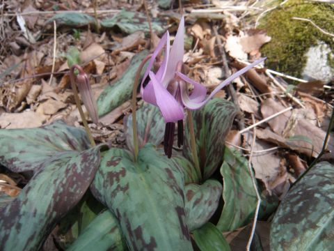 暖かな春の日差しに誘われてカタクリの花が咲き始めました。場所がお気に召したようで年々増えて広がっています。思いがけない場所に一本だけあったりしますので、種をアリが運んだのでしょう。