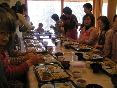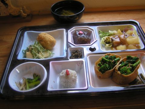 今年に入って初めての正食です。今回は人数が多く21人でした。メニューは菜の花稲荷・独活のお吸い物・ひよこ豆のコロッケ・大根と車麩の吉野煮・レンコンのもち米蒸・水菜とりんごの豆乳マヨネーズ和え・黒糖ワラビ餅・蕗の薹とたらの芽のてんぷら・独活の皮のきんぴら・菜の花の辛子醤油あえ・蕗の薹味噌・と盛りだくさんでどれも美味しくいただきました。