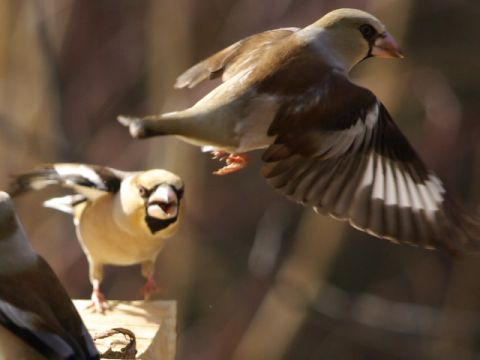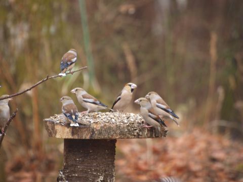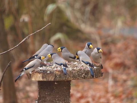 久し振りに仲間だけのお喋り楽しいね。エナガ,シメ,イカルのグループです。