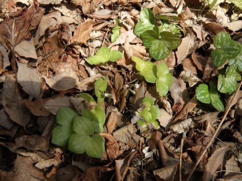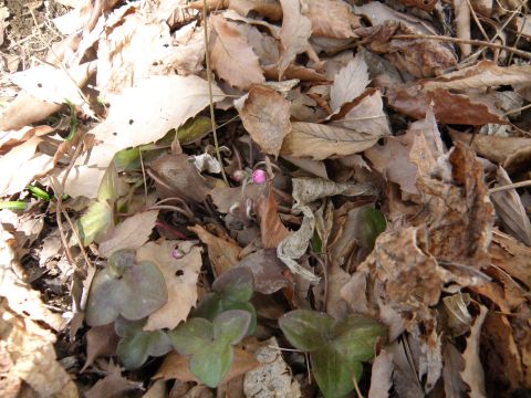 ユキワリソウも枯葉の下で蕾を膨らましていました。春はもうそこまで足音を忍ばせてやってきています。